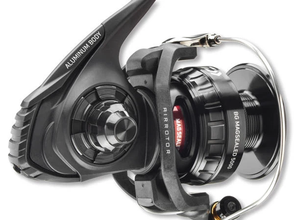 De Daiwa BG Magsealed molens combineren ultieme sterkte en comfort met een soepele loop en een hoogwaardig ontwerp. Het hardbody van HardBodyZ van aluminium zorgt voor een torsiebestendige bevestiging van de Digigear II-transmissie en voor een optimale krachtoverbrenging tijdens de dril. De ABS aluminium spoel is speciaal ontworpen voor gevlochten lijnen met een rubberen ring in het midden, die voorkomt dat de gladde gevlochten lijnen wegslippen bij belasting op de spoel. De Daiwa BG Magsealed-molens zijn vervaardigd in een speciale “geen verf” -stijl. Oppervlakteproces gecoat, zodat zelfs bij intensief gebruik en in zout water geen kleur van het molenlichaam kan loslaten. De slinger is stevig in het lichaam van de body geschroefd en zit torsiebestendig en zonder speling – ideaal wanneer grote krachten moeten worden overgebracht tijdens het vissen op zee. Natuurlijk zijn deze molens vanaf 4500 ideaal voor het vissen met pilkers en voor de compromisloze visserij op meerval. Het terug klappen van beugel gebeurt handmatig vanaf deze maat. In directe vergelijking met de Daiwa BG werd de wals afgedicht met een Magsealed-kogellager en uitgerust met een verbeterde aandrijftechniek. In vergelijking met de Daiwa Saltist is de transmissie verbeterd.