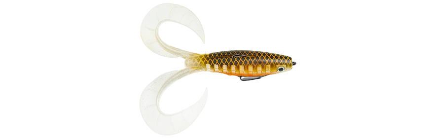 Dit Nieuwe kunstaas met dubbele staart van 12 cm is gemonteerd klaar om te vissen met een verzwaarde Texas haak systeem verzwaard met 7 gram , zowel in ondiepe gebieden op zoek naar snoek als in de lagere waterlagen om snoekbaars en grote baars te volgen. Inderdaad, zijn zeer flexibele dubbele staart is altijd in beweging, zelfs bij zeer lage snelheid, wat roofdieren niet onverschillig maakt. Door zijn weedless montage kan hij door de meest overbelaste omgevingen gaan zonder vuil te vangen. Door de brede spleet kan de Texaan perfect naar buiten komen tijdens de beet om zo een perfecte penetratie te garanderen.