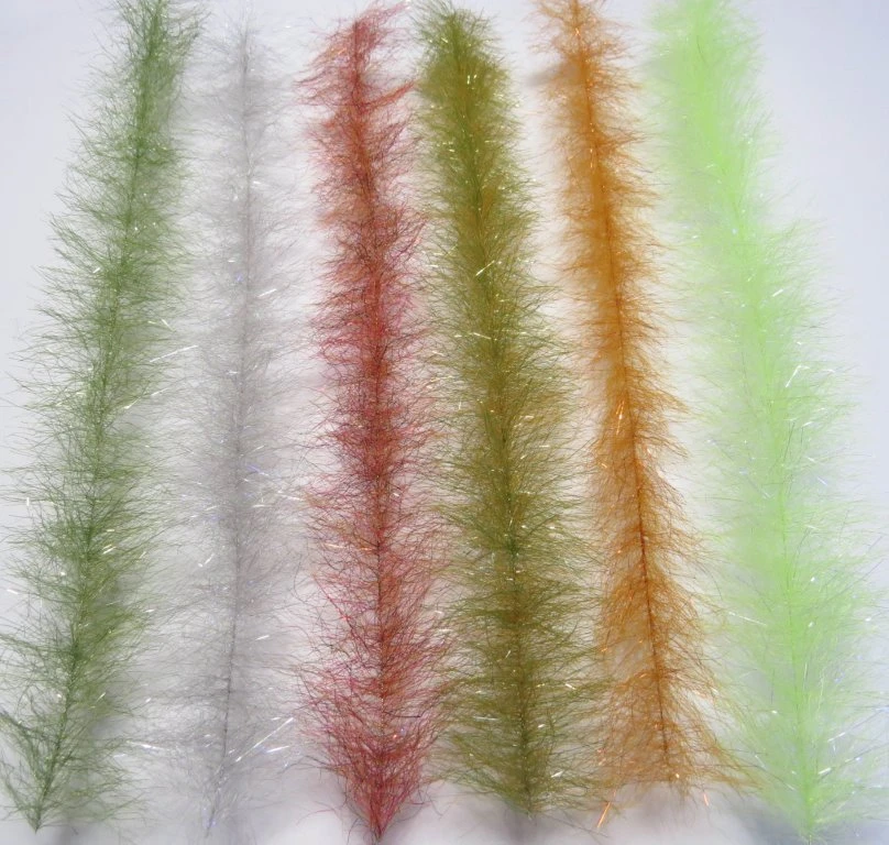 Dit is een prachtige brush met heel lange fibers eneen schitterende flash. Ideaal voor het binden van koppen van grote zoutwater streamers, maar kan ook gebruikt worden voor roofblei streamertjes: 2 à3 wikkelingen is genoeg, je vlieg is al bijna klaar!